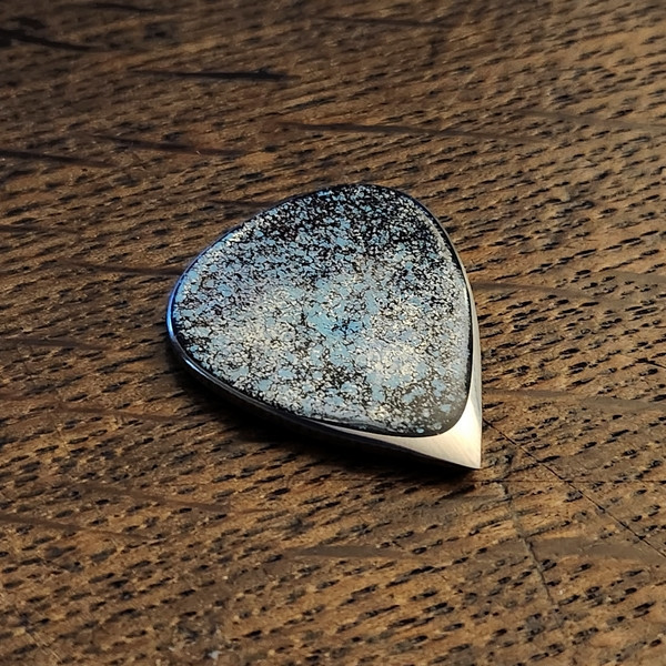 Plectre modèle Charly ,structure Titane ,déco marqueterie en relief .La face arrière est full titane finition brossée.