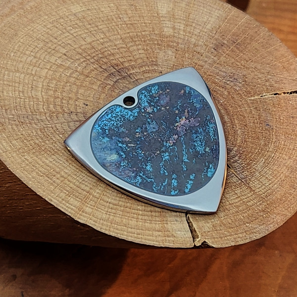 Ad for 1 plectrum to choose from 7 models. Guitar pick in austenitic stainless steel (no-magnetic), shaped tip beveled. Each side is brushed for a good grip. Each face is brushed for a good grip. Drilling to make a pendant. Available in thickness 2mm in another ad...